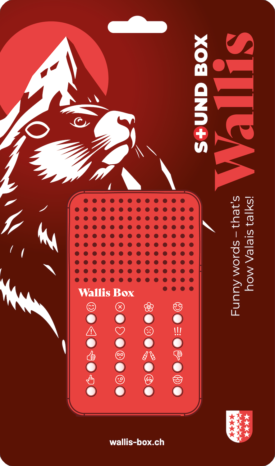 Die Wallis Box mit 16 lustigen Mundartausdrücken aus dem Wallis.
